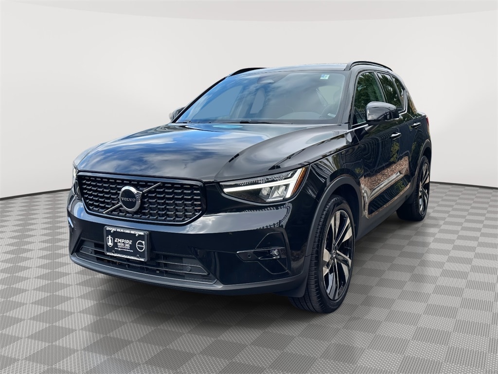 Certified. Onyx Black Metallic 2023 Volvo XC40 B5 Plus Dark Theme AWD Automatic with Geartronic 2.0L I4 Turbocharged DOHC 16V LEV3-ULEV70 Climate Package, Heated Rear Seats, Heated Steering Wheel, Power moonroof, Wheels: 20" 5-Double Spoke Black Alloy.