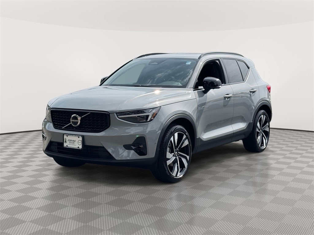Certified. Vapour Gray Metallic 2025 Volvo XC40 B5 Plus Dark Theme AWD Automatic with Geartronic 2.0L I4 Turbocharged DOHC 16V LEV3-ULEV70 Cargo Tray, Climate Package, First Aid Kit, Heated Rear Seats, Heated Steering Wheel, Pixel Headlight Technology, Protection Package Premier, Rubber Floor Mats, Wheel Locks, Wheels: 20" 5-Double Spoke Black Alloy.