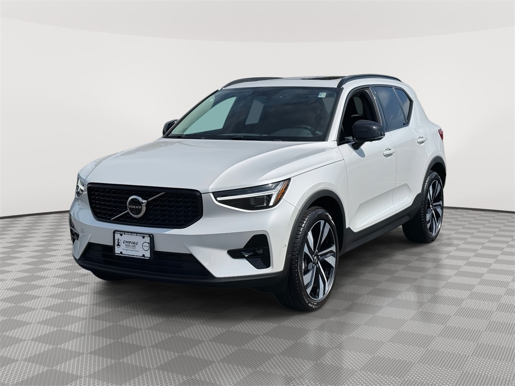 Certified. Crystal White Pearl 2025 Volvo XC40 B5 Ultra Dark Theme AWD Automatic with Geartronic 2.0L I4 Turbocharged DOHC 16V LEV3-ULEV70 All-Weather Floor Mats, Cargo Tray, Climate Package, Heated Rear Seats, Heated Steering Wheel, Internet access capable: Digital Services Package w/ 4 Year Subscription, Navigation system: Google Maps w/ 4 Year Subscription, Protection Package, Trunk Spoiler.